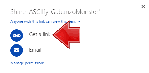 - Pop-up will appear and choose "Get a link", click "Create link" dark blue button.