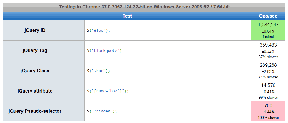 JQuery Selector Performance by Browser