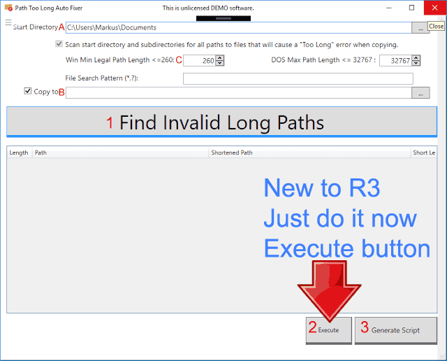 - Execute button produces a full transaction log (C:\Users\{Username}\FixLongPaths_{timestamp}.log) so you can track file changes.