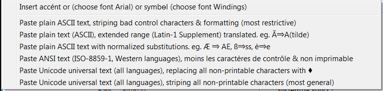 - Paste ANSI text (ISO-8859-1, Western languages), moins les caractères de contrôle && non imprimable